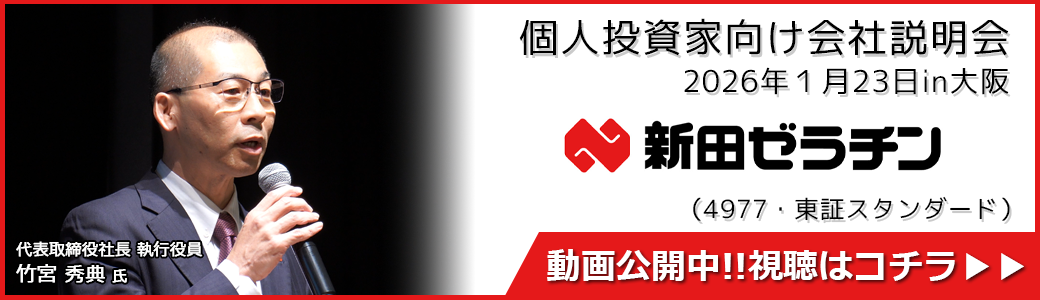 日本証券新聞社が主催する個人投資家向けのIRセミナーのもようをアーカイブ配信中。企業トップの話をいつでもどこでも聞くことが出来ます。