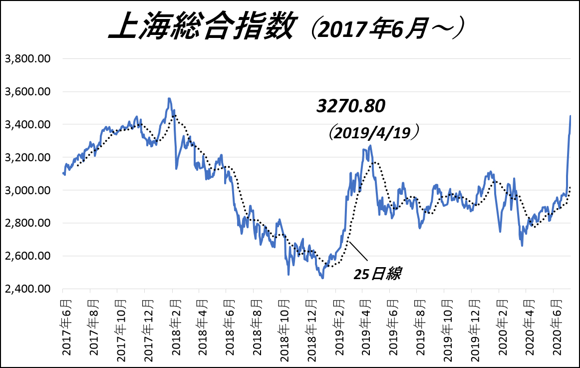 大和証券の木野内栄治チーフテクニカルアナリスト(写真)は10日付レポートで、「中国株高は国策に」として「上海総合指数に対するベータ値の高い日本株」30銘柄をピックアップしている。大統領選も絡んだ米中摩擦激化から、「ADR(米国預託証券)発行企業が米国株式市場から締め出されかねない情勢」にあり、「中国市場への退避的な上場が喫緊の課題」「それを消化するためには、中国株式市場が活況でないとならない」との発想だ。実際、上海指数はチャートの通り、9日までの8連騰で計16.5%高。さすがに反落した10日も1%程度の下げにとどまる。