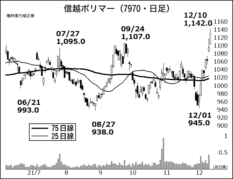 メジャーSQ(特別清算指数)算出日は通過したものの、引け後に米消費者物価指数、翌週に日米金融会合を控えた週末の様子見気分から、10日の日経平均は続落歩調。東証1部年初来高値銘柄数も30にとどまったが(9日は45銘柄)、このなかで注目してみたいのが信越ポリマー(7970)と日水製薬(4550)だ。この2銘柄に共通するのは、むろん親子上場子会社である点だ。