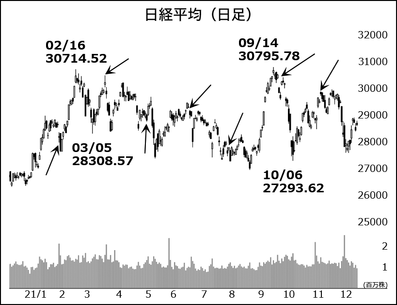 FOMCが目先的な相場の転機となるケースは少なくない。開催直後に矢印を付した日経平均チャートも示す通りだ。市場注視のイベントであれば、通過したこと自体が1つの材料となり、期待感で上げていても、警戒感から下げていても、出尽くし感で逆の目に出やすいとも言えようか。