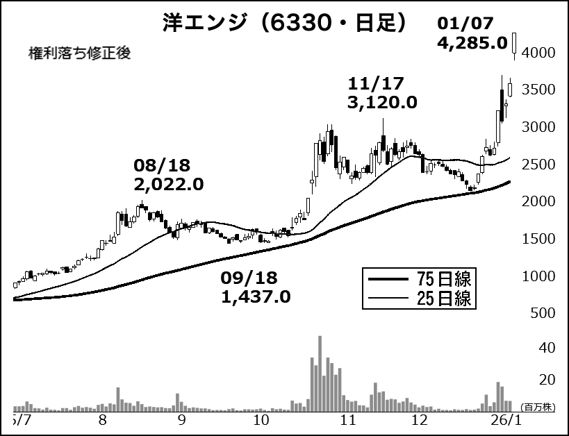 一方、海底のレアアース泥採取関連の三井海洋開発は買われ、東洋エンジニアリングはストップ高。