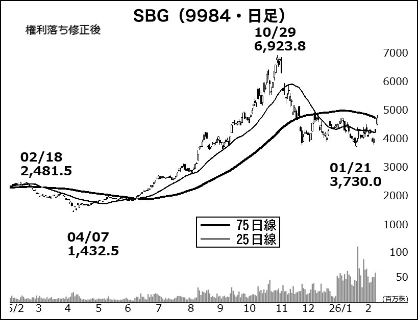 高市首相が2年限定の食品消費税ゼロの公約について、赤字国債に頼らないことを前提に議論すると説明した。財政リスクの懸念後退で、長期金利が低下し、日経平均は一時5万8000円に接近。米オラクルの上昇でSBGが高い。古河電工はGS証券が格上げし2日連続ストップ高。住友鉱山は株主還元方針の変更を好感。業績・配当予想の大幅上方修正のフルヤ金属は2日連続ストップ高。デクセリアルズは減益決算で大幅安。日清紡は今期営業減益計画で下落。