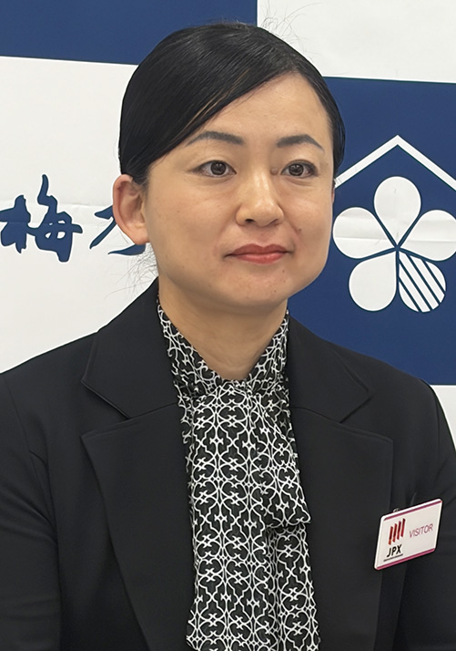 梅乃宿酒造(559A)が4月24日、東証スタンダードに上場。公開価格を50%上回る900円で初値を付けた。同社は奈良の酒造メーカー。「梅乃宿の梅酒」「あらごしシリーズ」など日本酒仕込みのリキュールで知られる。上場当日の記者会見で五代目蔵元、吉田佳代代表取締役社長=写真=が語った内容は次の通り。