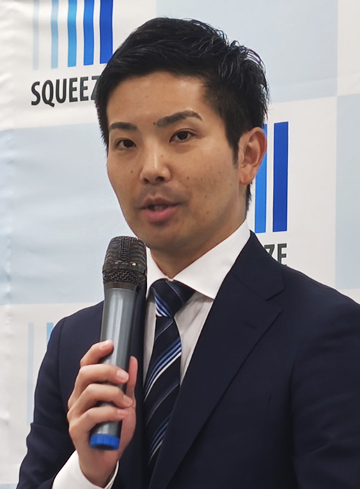 SQUEEZE(558A)が4月22日、東証グロースに新規上場した。初値は公開価格を4.5%上回る3,250円。SaaSとBPOの両輪でホテル運営を支援する宿泊DX(デジタルトランスフォーメーション)企業。上場当日の記者会見で舘林真一代表取締役CEO=写真=が語った内容のポイントは次の通り。