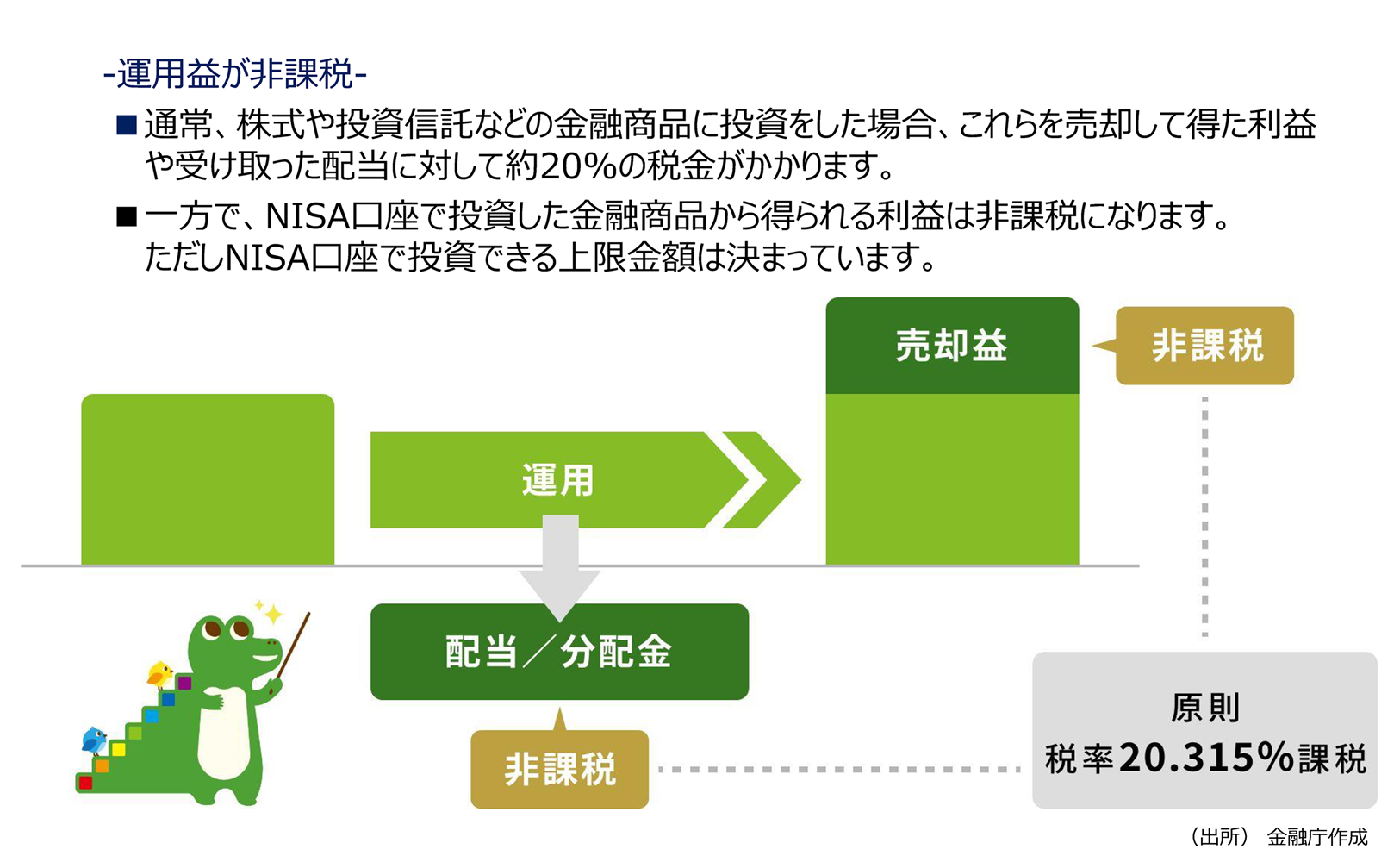 本来、金融商品を運用するなど投資で利益が発生した場合、その利益に対して約20%の税金が課せられます。しかしNISAを活用すれば、売却したときに出る利益だけでなく、分配金に関しても税金が掛かりません。老後に対する不安などが高まっている中で非常にありがたい制度になっています。