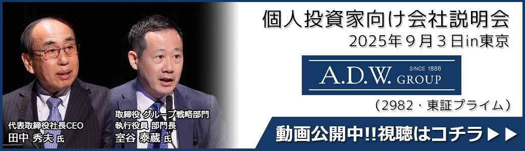 日本証券新聞社が主催する個人投資家向けのIRセミナーのもようをアーカイブ配信中。企業トップの話をいつでもどこでも聞くことが出来ます。